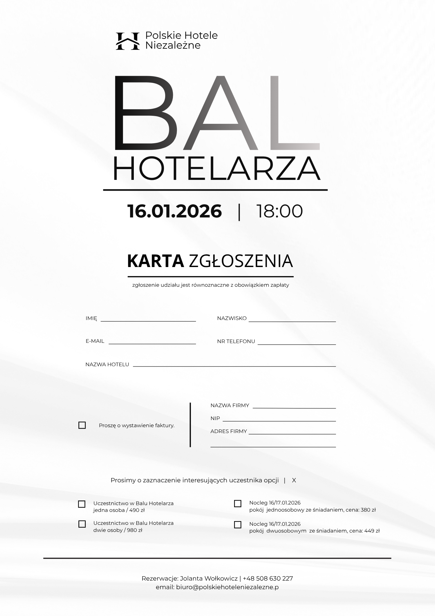 Bal Hotelarza to więcej niż gala – to spotkanie liderów i wizjonerów polskiej branży hotelarskiej, którzy doceniają najwyższy poziom detali i pasję wkładaną w budowanie idealnej atmosfery dla gości. To także okazja do inspirujących rozmów, wymiany doświadczeń i celebrowania naszej profesji w najlepszym wydaniu. Wieczór, który przypomni, że hotelarstwo to nie tylko zawód, ale przede wszystkim sztuka.